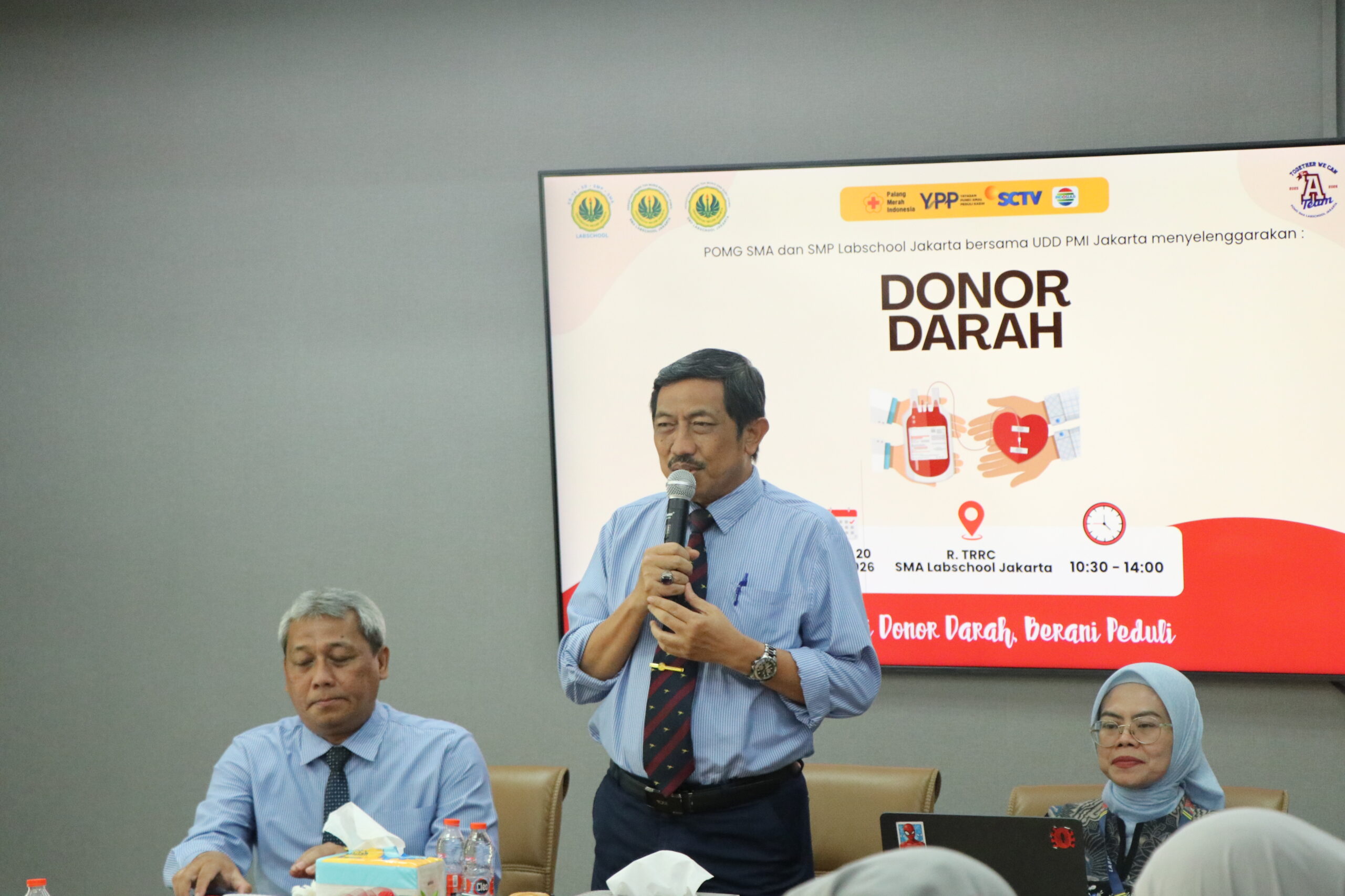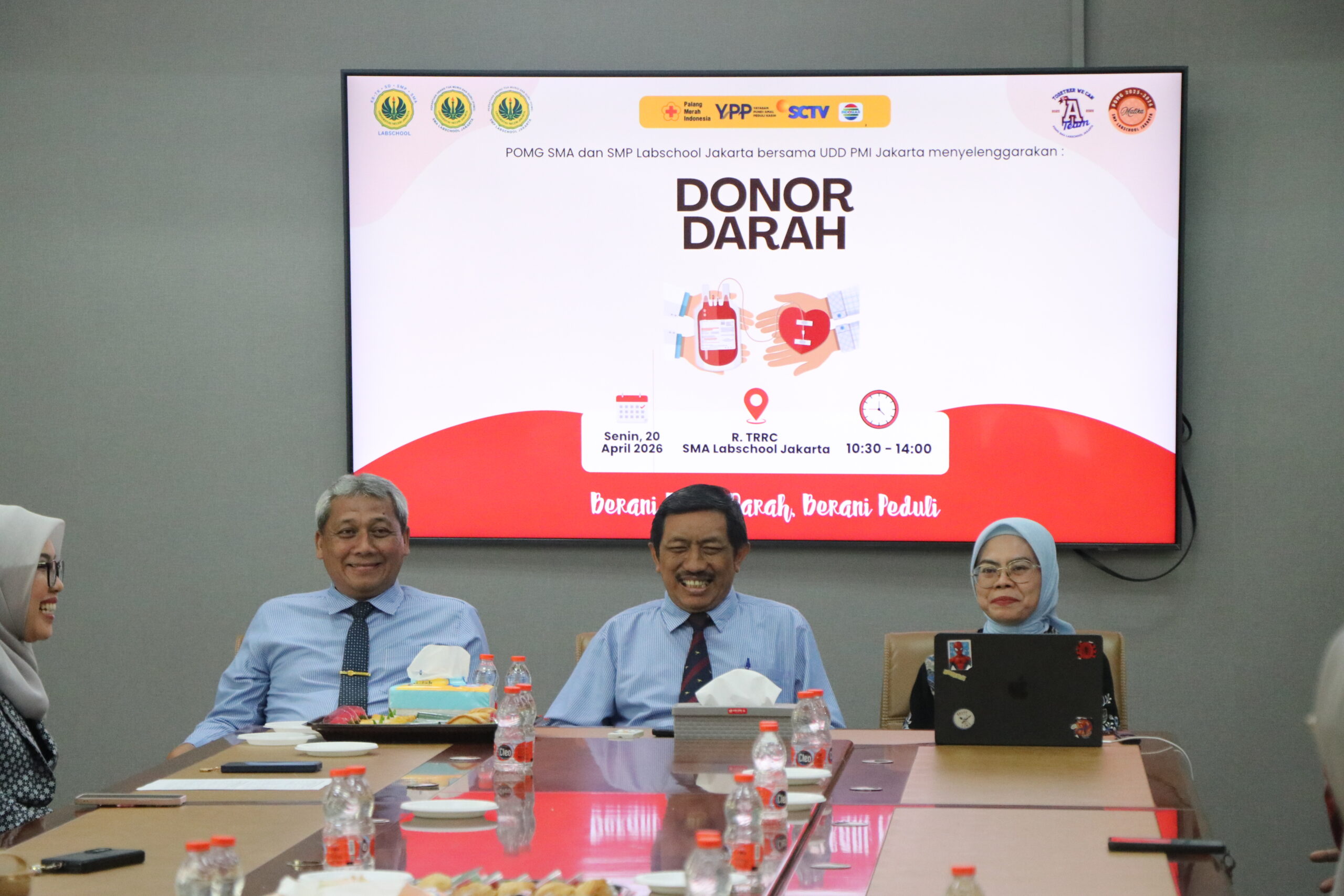 Humas BPS Labschool – Kolaborasi POMG SMP dan SMA Labschool Jakarta bekerjasama dengan berbagai pihak menyelenggarakan Donor Darah yang diselenggarakan pada hari Senin, 20 April 2026. Mengusung tema “Berani Donor Darah, Berani Peduli” diharapkan kegiatan ini dapat meningkatkan kepedulian dan keberanian para siswa, guru, tendik serta orang tua di lingkungan Labschool UNJ. Pada kegiatan kali ini POMG SMP dan SMA Labschool Jakarta bekerjasama dengan UDD PMI Jakarta dan Yayasan Pundi Amal Peduli Kasih (YPP) SCTV dan Indosiar.